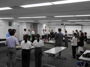 講師を交えて会場参加者により名刺交換・意見交換を行いました。